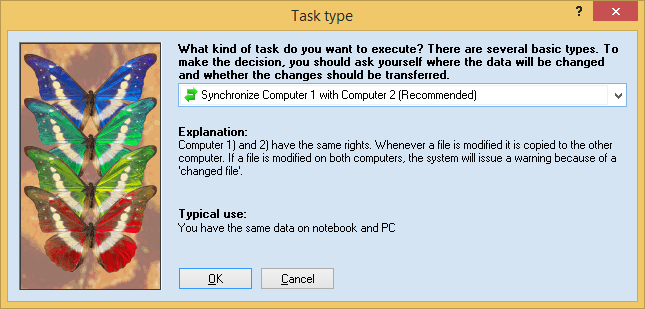 The task type defines how Easy2Sync should react if a file was modified on one side.