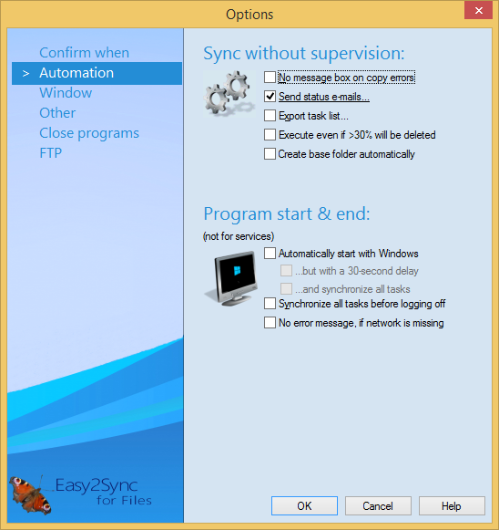 These options allow you to configure things to let Easy2Sync run automatically.